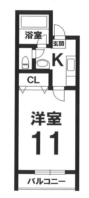 ◆201号室 間取り:1K(バス・トイレ別)◆角部屋